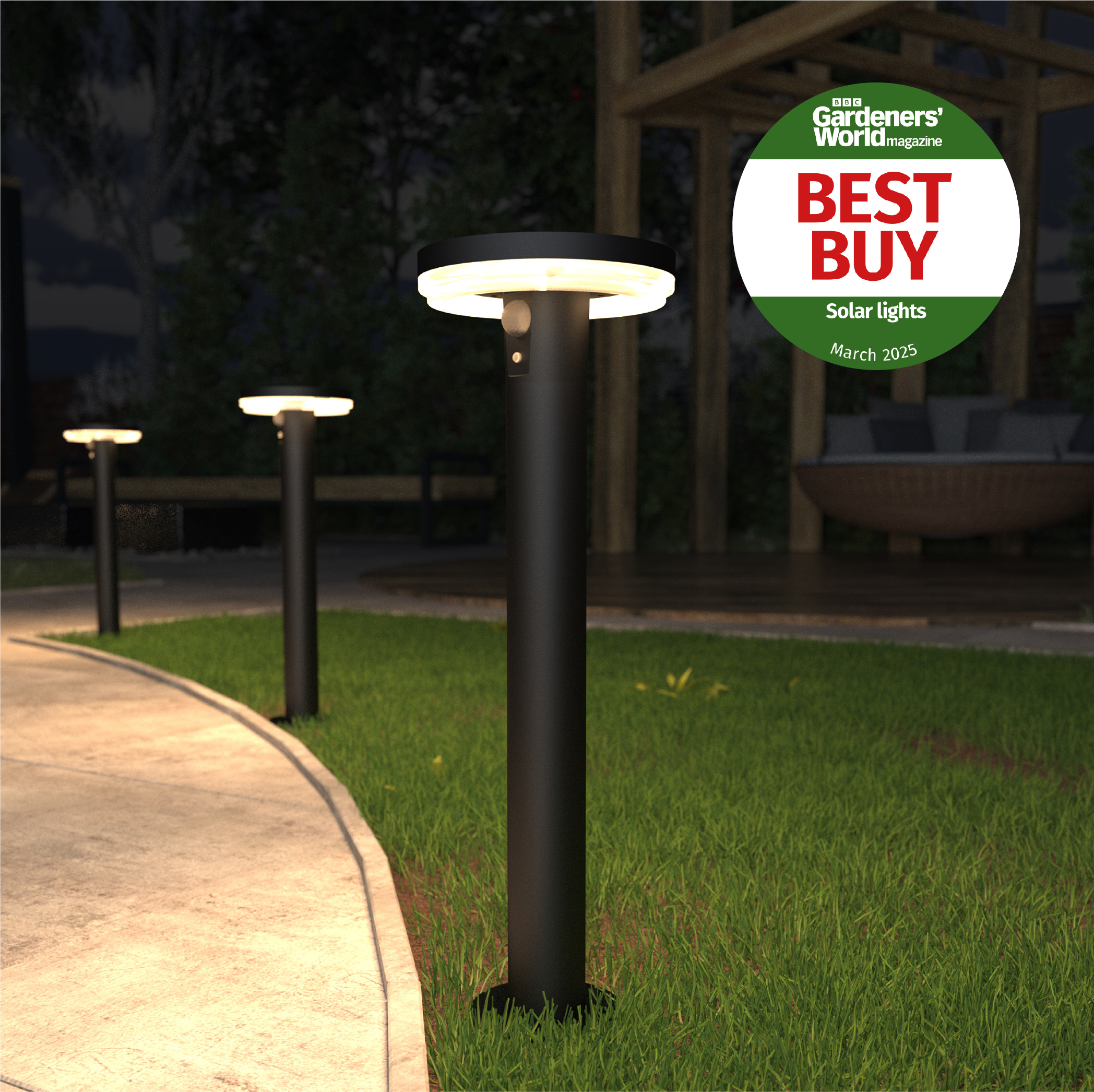 Antheia LED Solar Bollard. IP54 and highly durable for all year round use, with no need for electrical wiring. Comes supplied with warm white LED bulbs. Co-ordinating range available.
