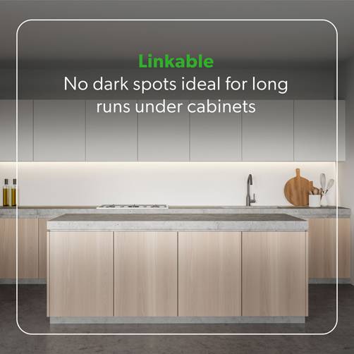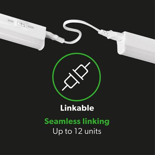 LED linkable undercabinet light with a selectable colour temperature of 3000K to 4000K Warm White to Cool White. An integrated driver and unique fixing clip design makes for an ease of installation. Ideal for kitchens, undercabinet, adding task lighting or for retail applications.
